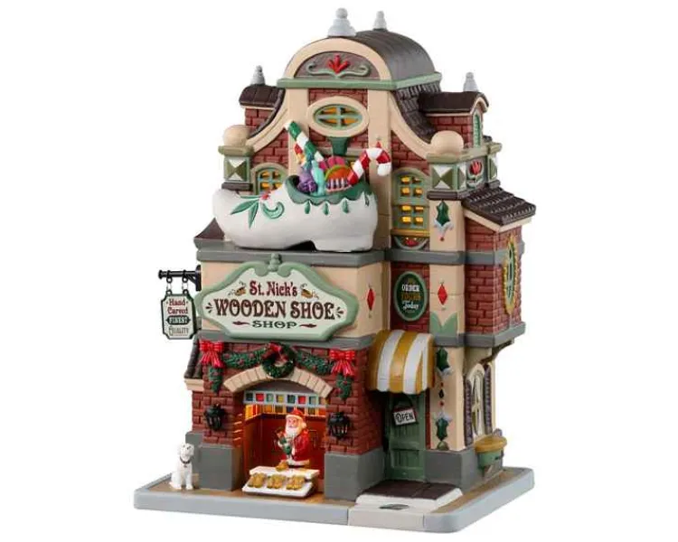 If The Clog Filled With Toys And Treats On The Rooftop Doesn’T Announce St. Nicks Wooden Shoe Shop Perfectly, We Don’T Know What Would. Adorned With Festive Christmas Decor, St. Nick’s Has Hand-Carved And Beautifully Decorated Wooden Shoes In All Sizes. Children Look Forward To Filling Theirs With Carrots And Hay For St. Nick’s Horse Or Donkey When He Stops By On December 6Th To Fill Their Clogs With Gifts And Sweets. (Copyright 2022, 2023, Lemax, Inc.)